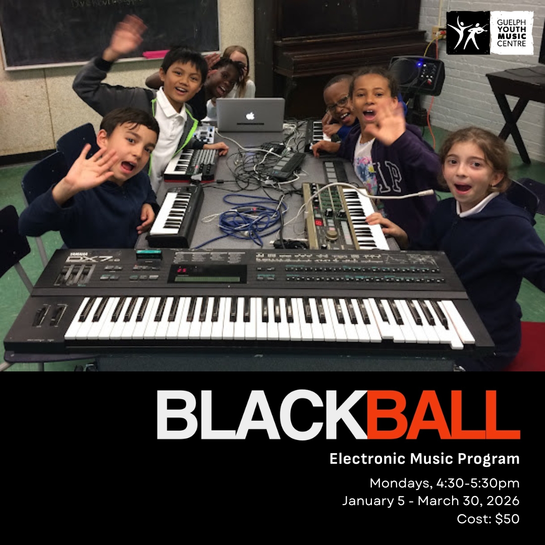 Blackball is hands-on, live electronic music performance on real synthesizers, drum pads and vocoders—no iPads, no headphones, no screens. Students will learn songs together, and play as a group! You can be a total beginner or a synth star: Blackball is for everybody!
